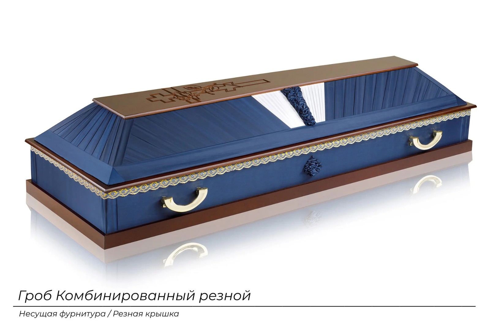 Гроб Комбинированный 4-х гранный резной синий